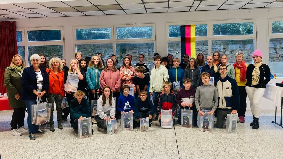 Die neun Praktikantinnen und 32 Austauschschüler beim Empfang im Rathaus. Hier erhalten alle traditionell tolle Gastgeschenke. Vielen Dank an alle Organisatoren, das Rathaus und alle französischen Freunde und Gastfamilien, die den Austausch überhaupt erst möglich und zu einem unvergesslichen Erlebnis machen!