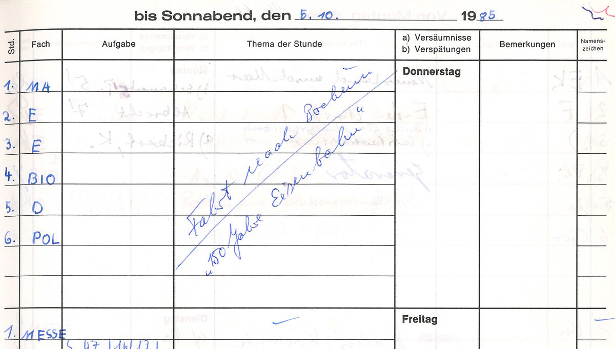 Wenn Ihr aus Eurer Schulzeit noch Bilder, Unterlagen, Bücher oder auch Geschichten habt und uns diese zur Verfügung stellen möchtet, wendet Euch gerne an Markus Hufnagel (mhufnagel@gymnasium-schmallenberg.de). Wir freuen uns über alles, was irgendeiner Form mit dem Schulleben in Zusammenhang steht.