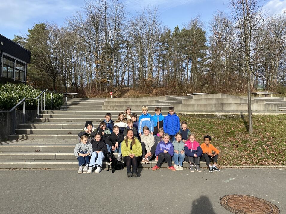 Im Rahmen des Biologieunterrichts zum Thema „Der Hund als Haustier“ bekam die Klasse 5b am 12.11.25 besonderen Besuch: Die Praktikantin Frau Schmitt-Degenhardt brachte ihren Hund Sammy mit in den Unterricht.