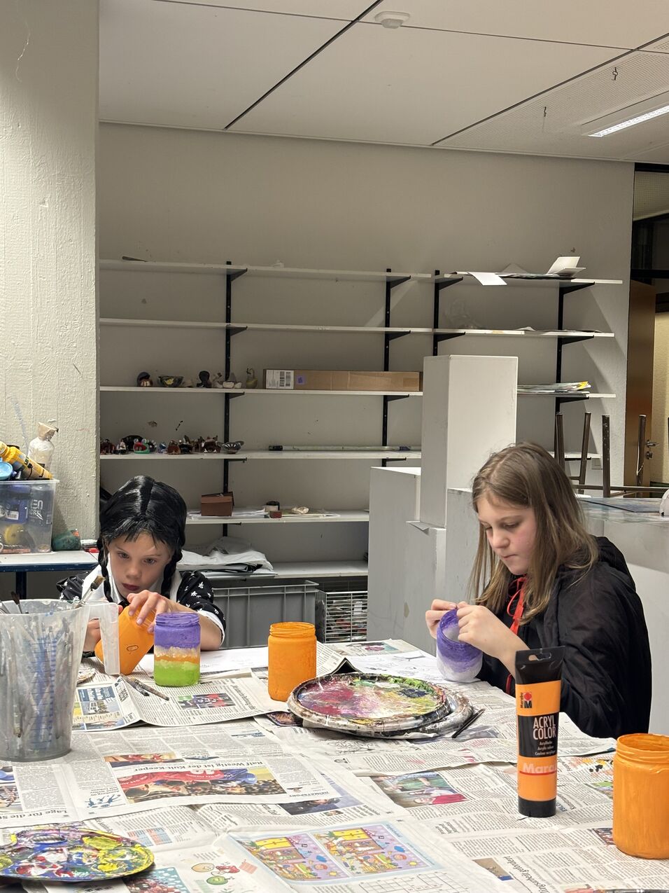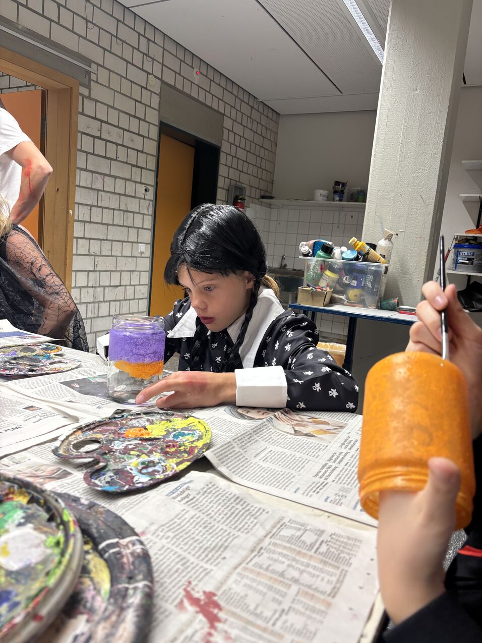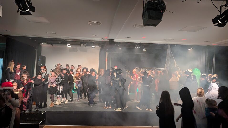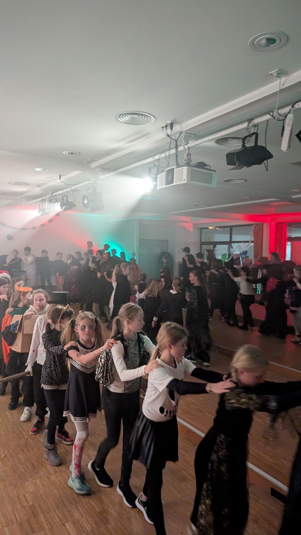 Wie schon in den vergangenen Jahren konnten sich die Kinder im Vorfeld zu verschiedenen Projekten anmelden. Zur Auswahl standen das Basteln eines Hexenkessels aus Ton, das Gestalten von Monsterlichtern, das sportliche Halloween-Parkour in der Turnhalle, das Backen lustiger Halloween-Kekse sowie das Herstellen von buntem Schleim. Damit war für jeden Geschmack etwas dabei. Nach der Begrüßung in der Aula starteten die Gruppen in ihre Projekte, bevor anschließend die Aula zur Gruseldisco wurde. Dort präsentierten einige Gruppen ihre Ergebnisse, und beim Kostümwettbewerb wurden die kreativsten Verkleidungen des Abends prämiert. Passend zur Stimmung sorgten Musik, Tanz und kleine Spiele für beste Unterhaltung. Für das leibliche Wohl war ebenfalls gesorgt: An einem Buffet konnten sich die Kinder mit Snacks und Getränken stärken. Besonders beliebt war auch in diesem Jahr die Schmink- und Tattoostation, an der viele Kostüme noch den letzten Feinschliff erhielten.
