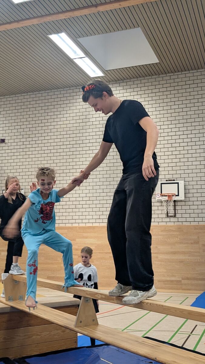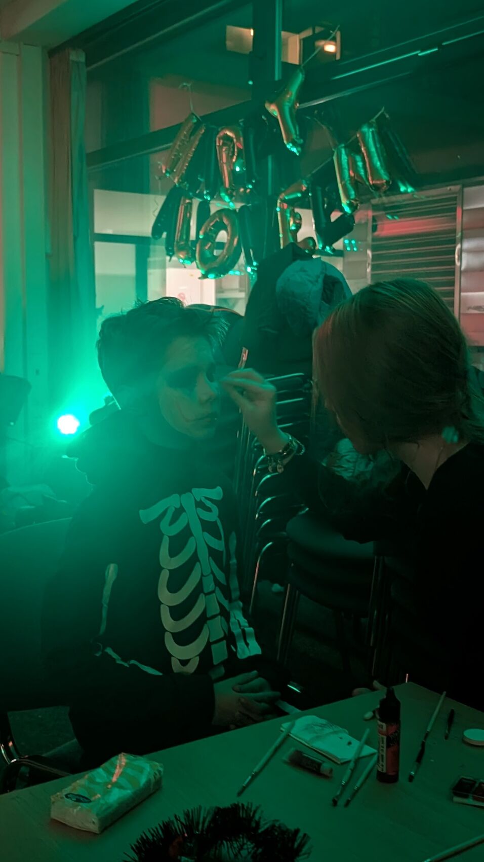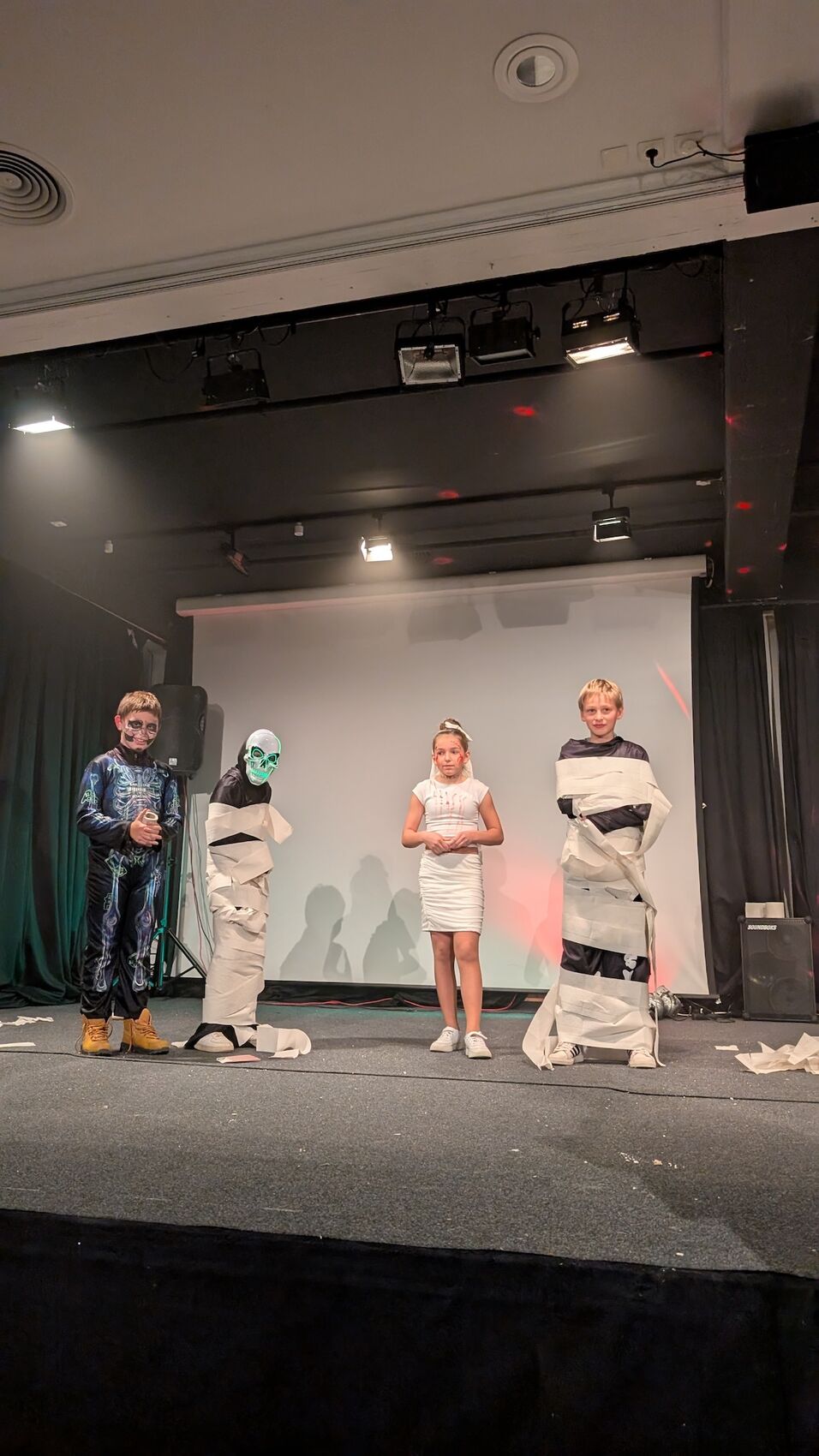 Wie schon in den vergangenen Jahren konnten sich die Kinder im Vorfeld zu verschiedenen Projekten anmelden. Zur Auswahl standen das Basteln eines Hexenkessels aus Ton, das Gestalten von Monsterlichtern, das sportliche Halloween-Parkour in der Turnhalle, das Backen lustiger Halloween-Kekse sowie das Herstellen von buntem Schleim. Damit war für jeden Geschmack etwas dabei. Nach der Begrüßung in der Aula starteten die Gruppen in ihre Projekte, bevor anschließend die Aula zur Gruseldisco wurde. Dort präsentierten einige Gruppen ihre Ergebnisse, und beim Kostümwettbewerb wurden die kreativsten Verkleidungen des Abends prämiert. Passend zur Stimmung sorgten Musik, Tanz und kleine Spiele für beste Unterhaltung. Für das leibliche Wohl war ebenfalls gesorgt: An einem Buffet konnten sich die Kinder mit Snacks und Getränken stärken. Besonders beliebt war auch in diesem Jahr die Schmink- und Tattoostation, an der viele Kostüme noch den letzten Feinschliff erhielten.