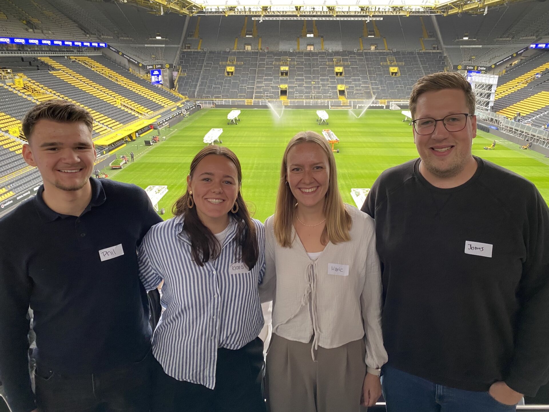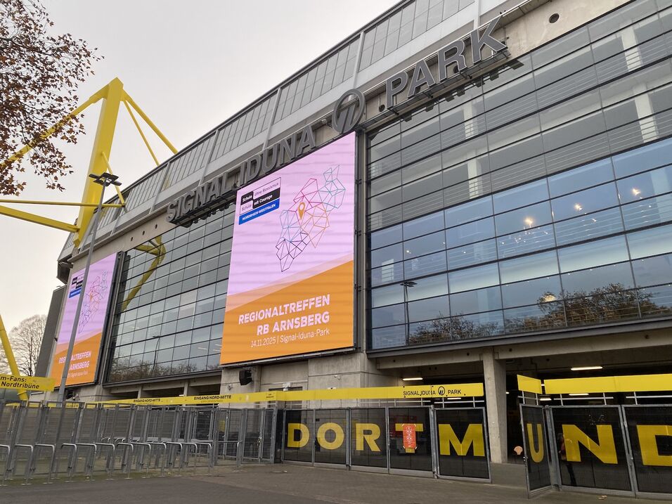 Unsere Schülervertretung nahm kürzlich am Courage-Regionaltreffen im Regierungsbezirk Arnsberg teil, das am Freitag, 14. November 2025, im Signal-Iduna-Park in Dortmund stattfand. Schülersprecher Phil Hochstein, seine Stellvertreterin Klara Salamon und die SV-Lehrkräfte Frau Hermes und Herr Ivo vertraten unsere Schule dort und erhielten vielfältige Impulse für die demokratische und antirassistische Arbeit.