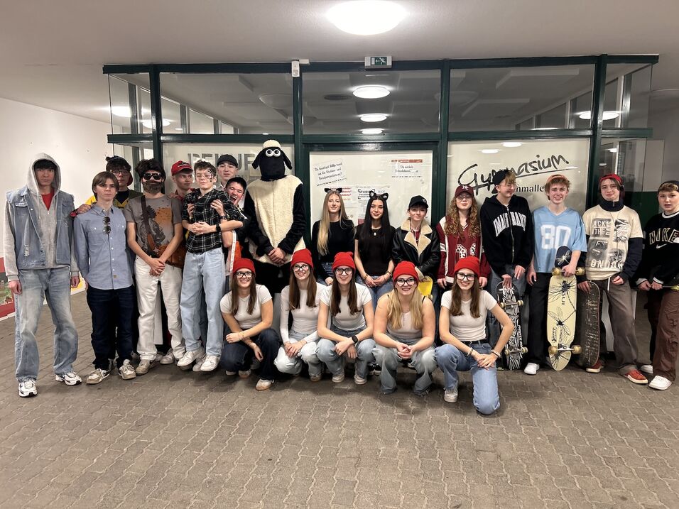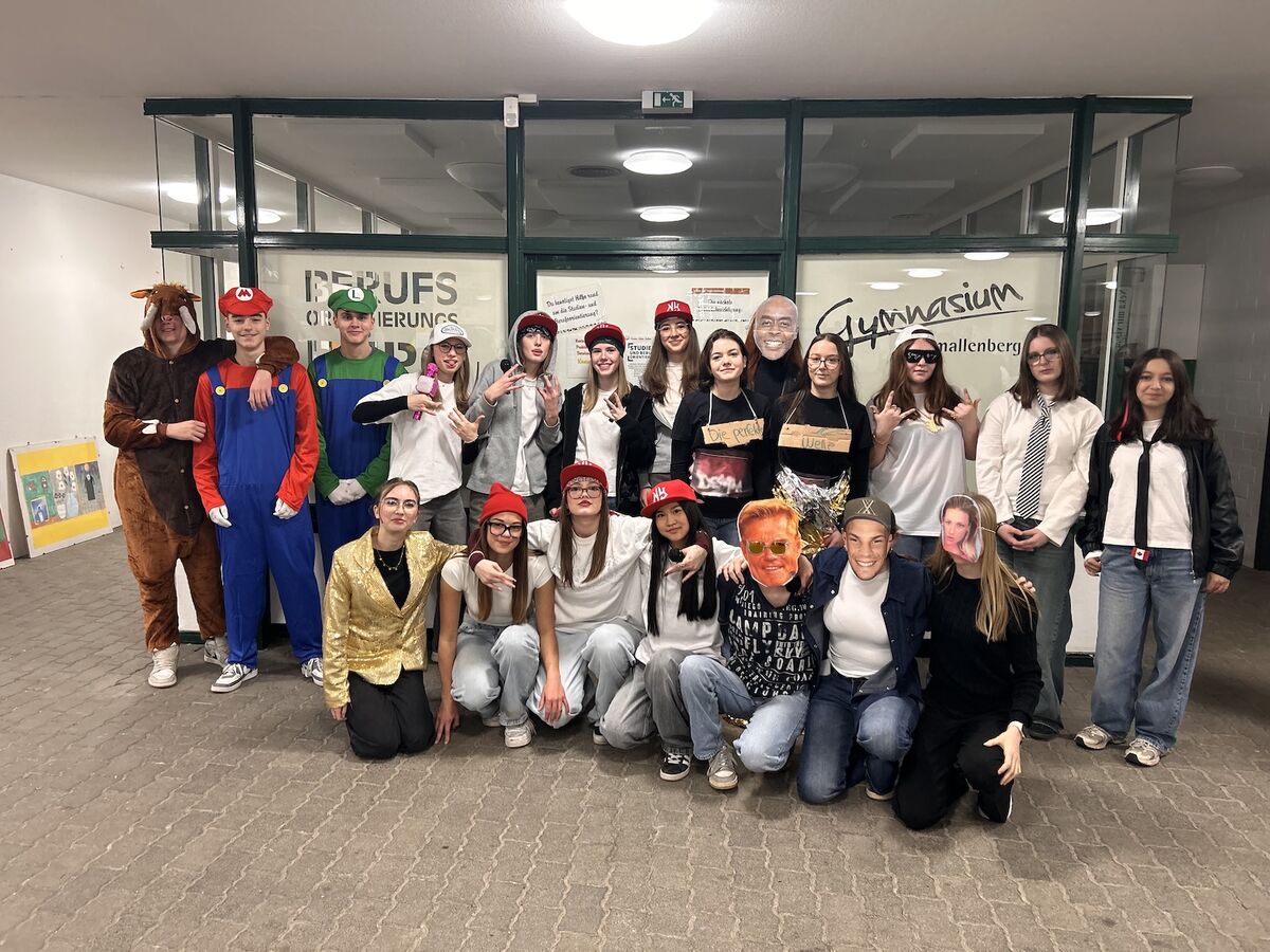 In der dritten und vierten Stunde organisierte die Jahrgangsstufe Q1 eine Karnevalsparty mit abwechslungsreichen und unterhaltsamen Spielen. Erstmals wurde die Veranstaltung digital über die Plattform „Twitch“ gestreamt und live in alle Klassenräume übertragen. Dadurch konnten alle Schülerinnen und Schüler gleichzeitig teilnehmen. Für die einzelnen Spiele, wie beispielsweise „Reise nach Jerusalem“ oder ein Schokokuss-Wettessen, wurden gezielt Teilnehmerinnen und Teilnehmer aus den Klassen ausgewählt und zugeschaltet, sodass ein gemeinsames Erlebnis für die gesamte Schulgemeinschaft entstand.